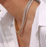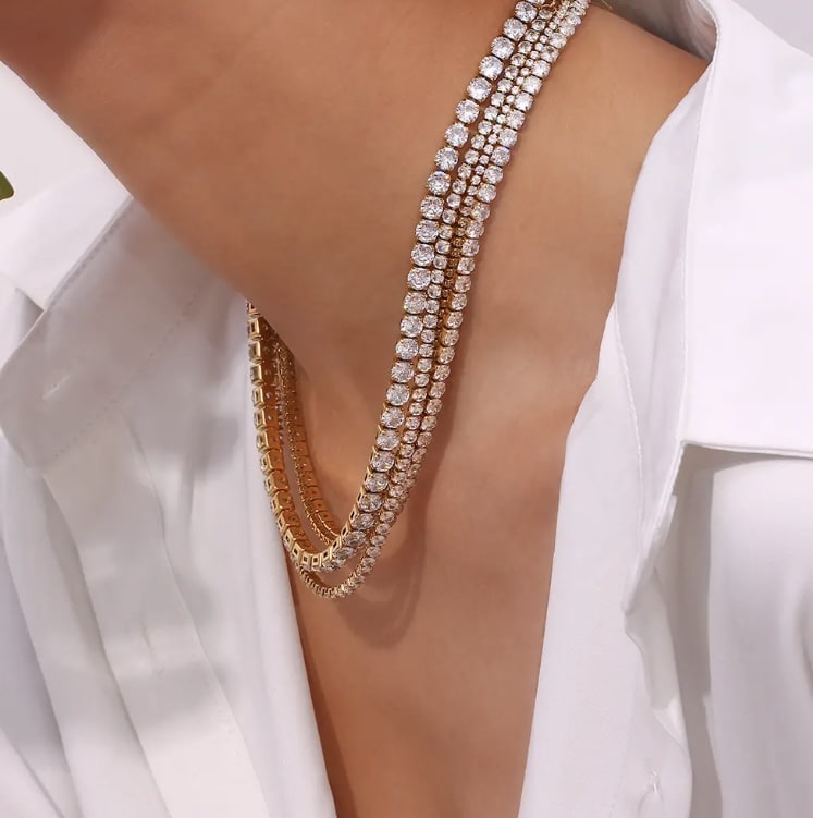 Predstavujeme náš nádherný tenisový náhrdelník, nadčasový kúsok, ktorý stelesňuje eleganciu a sofistikovanosť. Tennis Náhrdelník  s kontinuálnou líniou oslnivého okrúhleho brúseného kubického zirkónu sa leskne a žiari pri každom pohybe. Kamene sú starostlivo osadené v jemnom a bezpečnom nastavení hrotov, čo zaisťuje maximálnu brilanciu. Jeho bezpečná spona zaručuje nosenie bez starostí. Je ideálny na vrstvenie s vašimi ďalšími obľúbenými náhrdelníkmi.