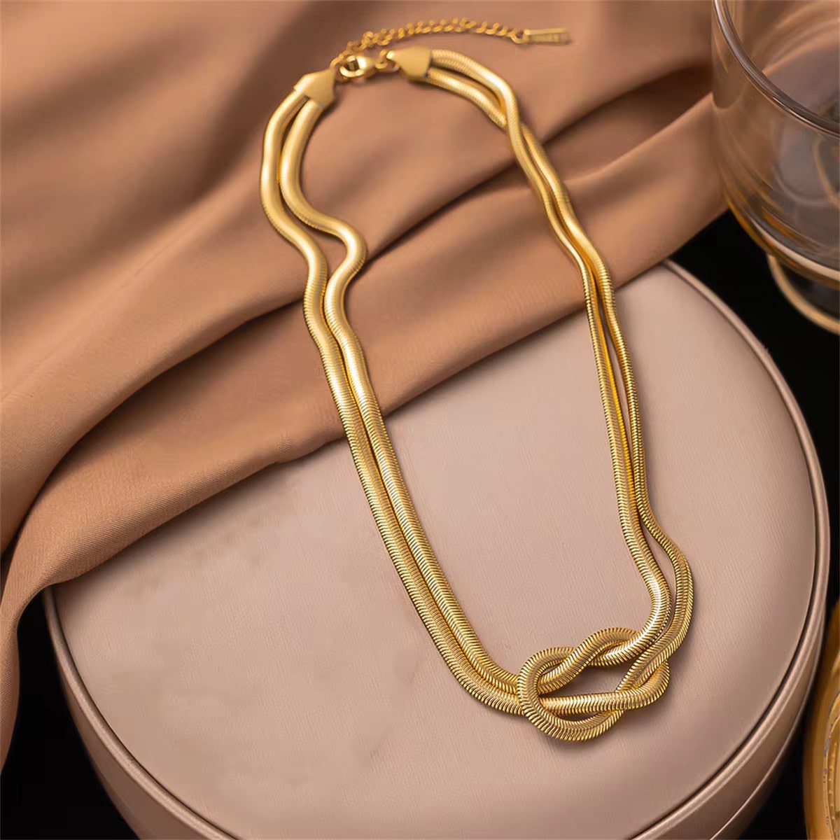 Náhrdelník je vyrobený z nehrdzavejúcej ocele, nie je len pozlátený. To znamená, že farba vydrží naozaj dlho, ľahko nevybledne ani sa nezničí a je vodeodolná. Keď sa šperk nepoužíva, odporúčame ho skladovať na čistom a tmavom mieste a uchovávať ho v suchu. Ak sa šperk dostane do kontaktu s vodou, vždy ho vysušte.